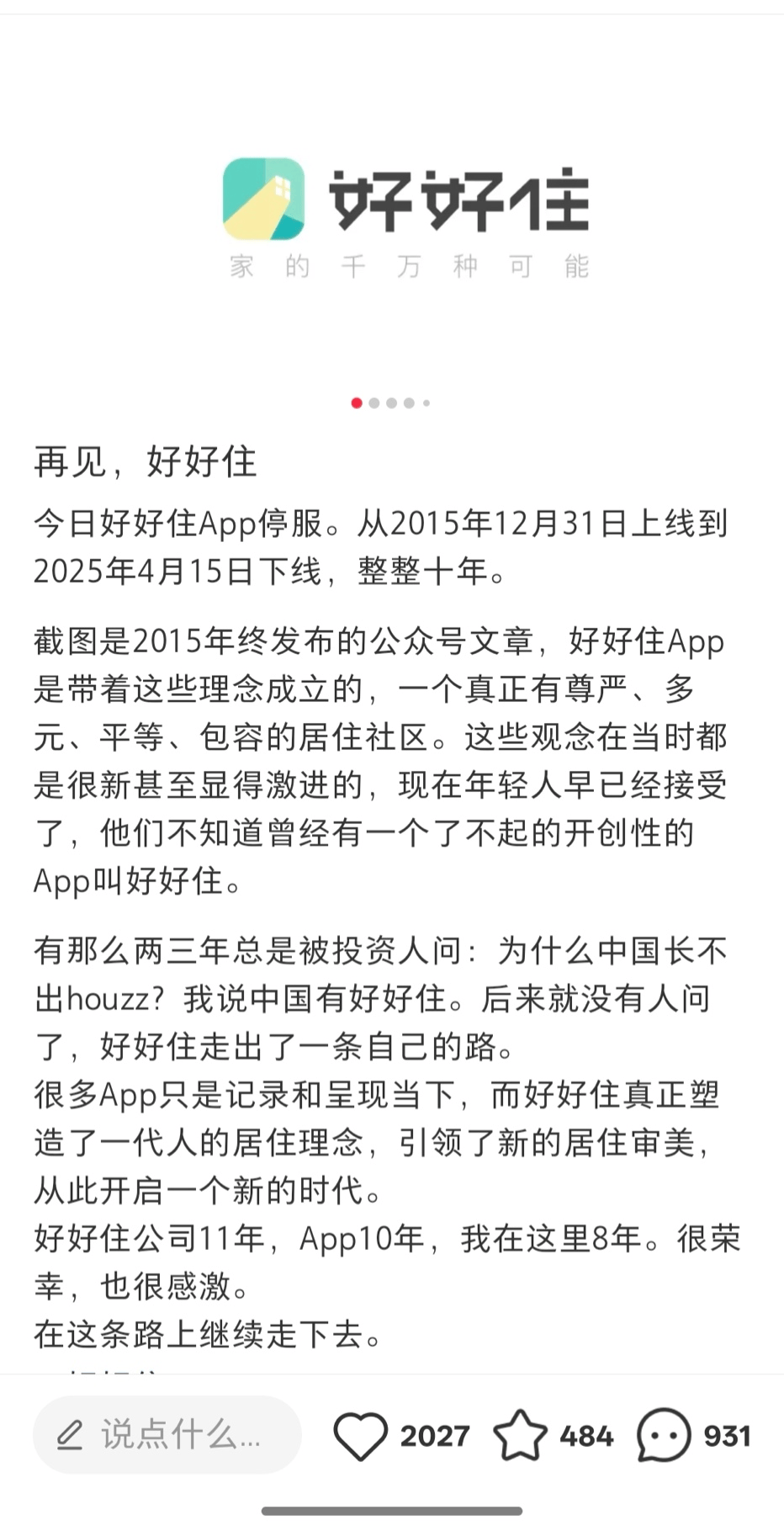 ”4月15日晚,总阅读量225亿,数据远不及上述提到的小红书头部家居博从。好好住还正在开了一家家居设想体验店。其微信号比来一次更新逗留正在本年1月18日。”2015年前后,其自创Houzz向设想师收取会员费,小红书家居赛道的变现效率持续加强。正在4月15日关停前两天。