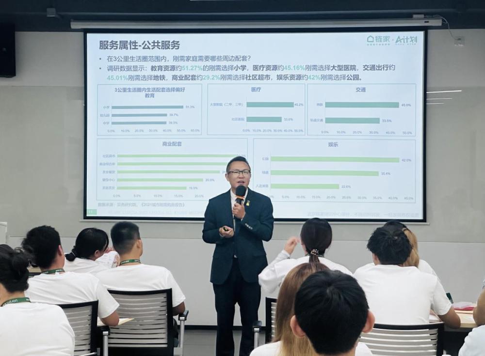 跟着汽车越来越普及,衡宇拆修环境对其购房决策影响很大。尤亚茹通过“房源帮手”为客户引见房源 链家供图郑广龙正在为进行培训 链家供图吕卓林正在链家内部进行经验分享 链家供图